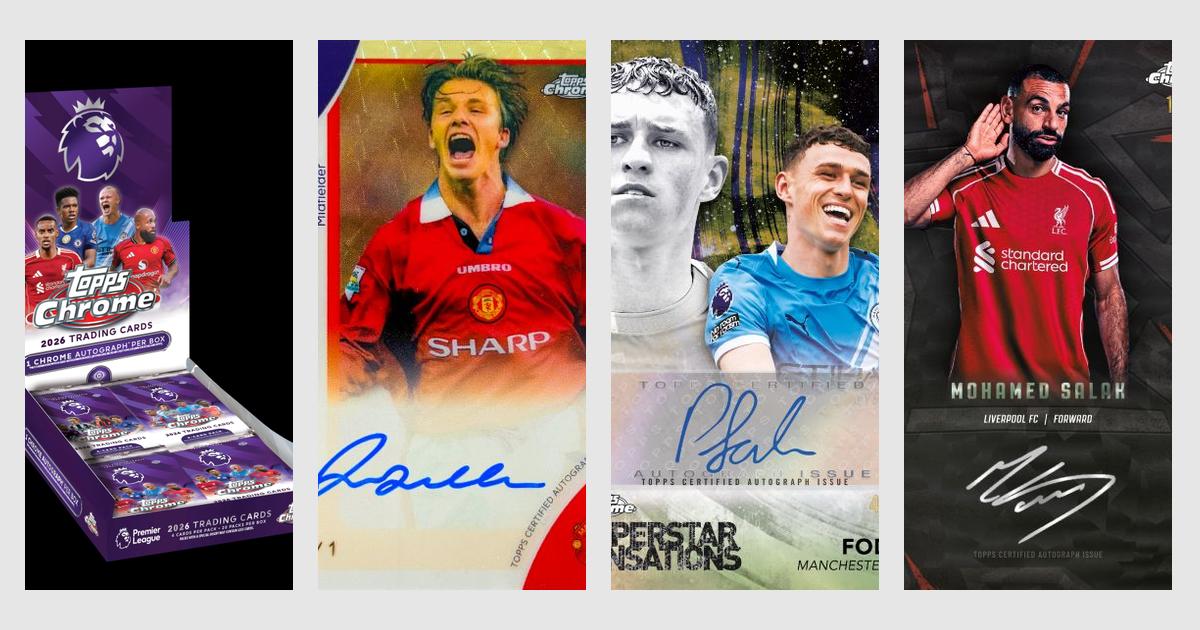 2026 Topps Chrome Premier League Soccer brings the league’s biggest stars to chromium with a product designed to spotlight England’s top flight in full shine. Featuring all 20 clubs and a mix of current standouts and legendary names, the release delivers everything collectors expect from a Chrome flagship — vibrant Refractor parallels, dynamic inserts, and premium autographs. While Topps has yet to finalize every configuration detail, confirmed formats include Hobby, Value Blaster, Retail Tins, Hanger Boxes, and Breaker’s Delight boxes. Hobby boxes will guarantee one autograph and 10 inserts per box.