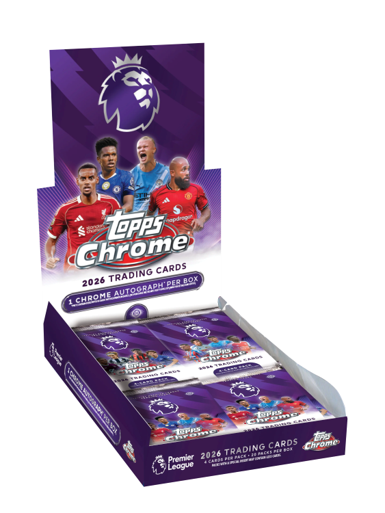 2026 Topps Chrome Premier League Soccer brings the league’s biggest stars to chromium with a product designed to spotlight England’s top flight in full shine. Featuring all 20 clubs and a mix of current standouts and legendary names, the release delivers everything collectors expect from a Chrome flagship — vibrant Refractor parallels, dynamic inserts, and premium autographs. While Topps has yet to finalize every configuration detail, confirmed formats include Hobby, Value Blaster, Retail Tins, Hanger Boxes, and Breaker’s Delight boxes. Hobby boxes will guarantee one autograph and 10 inserts per box.